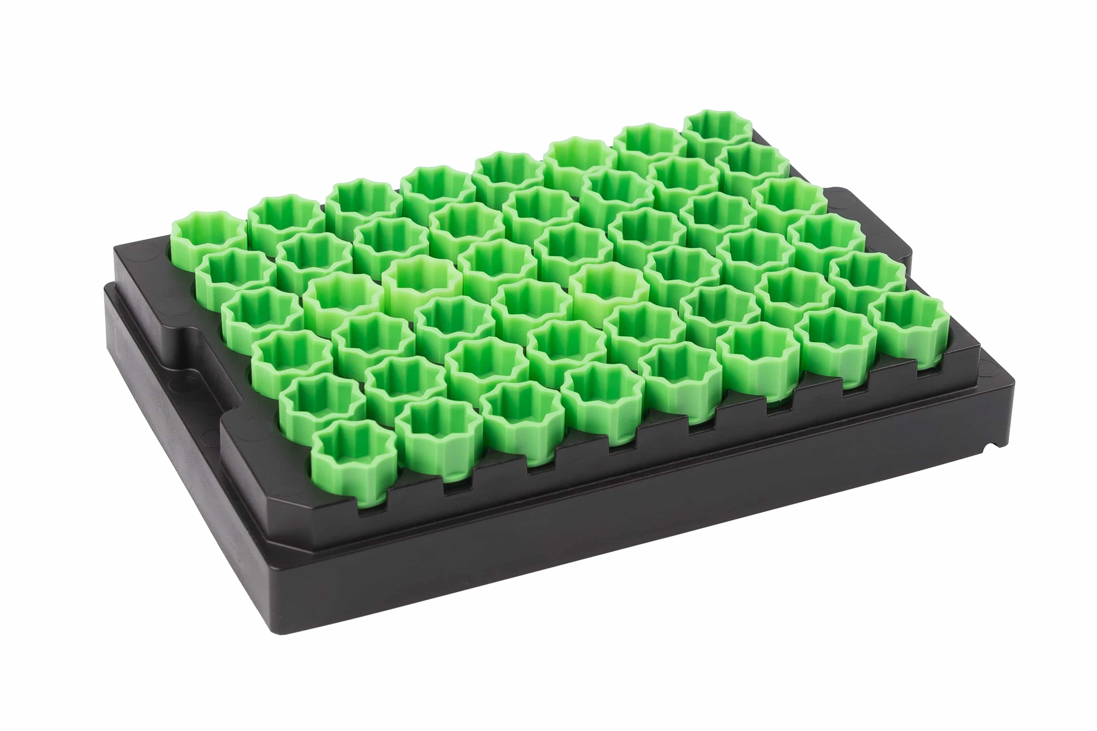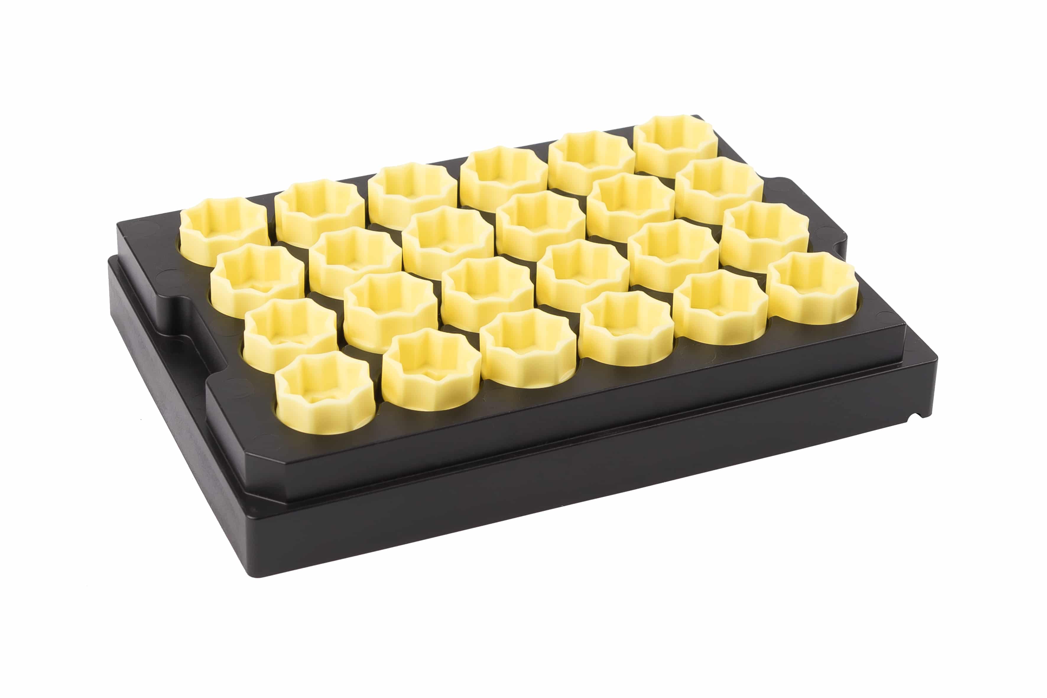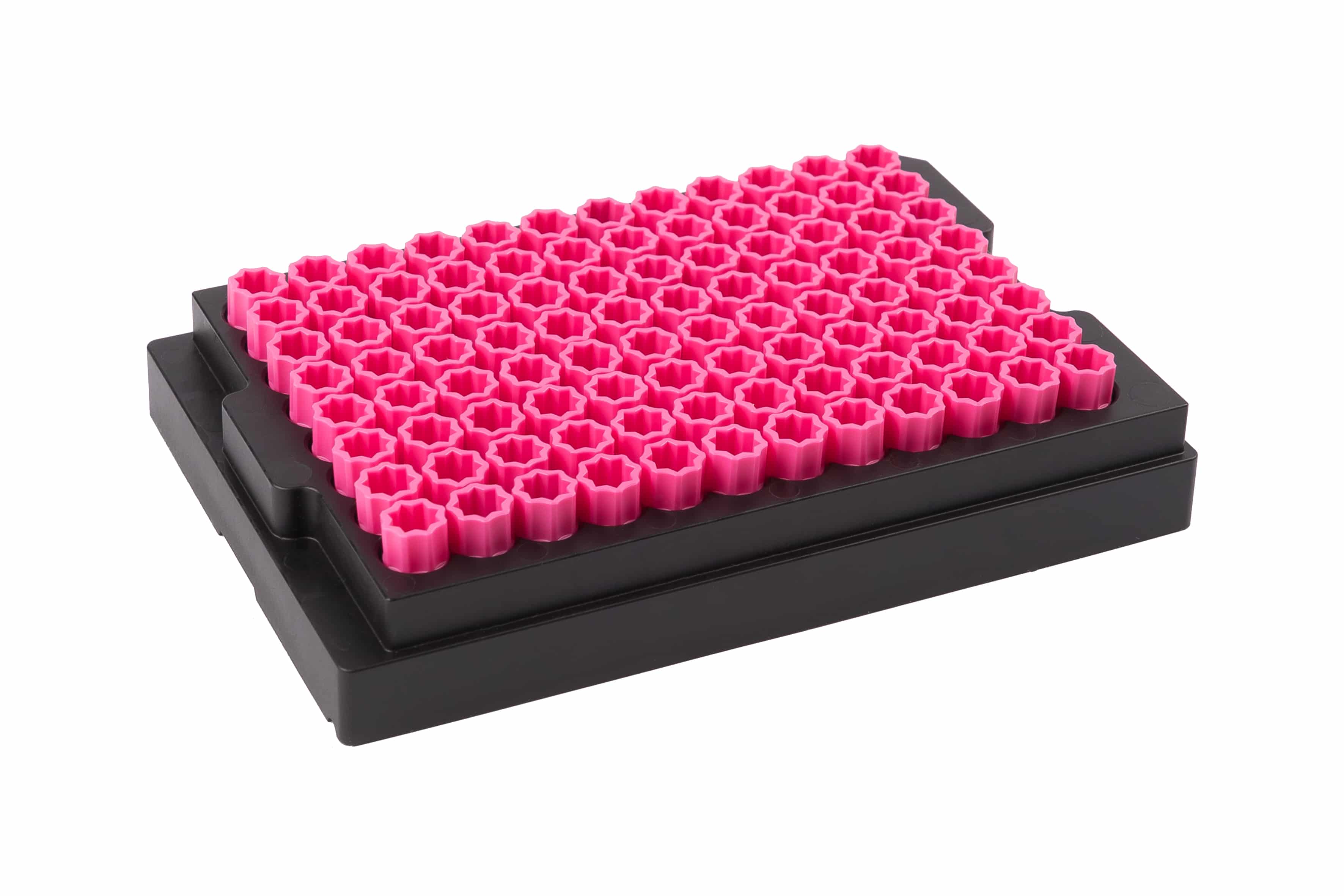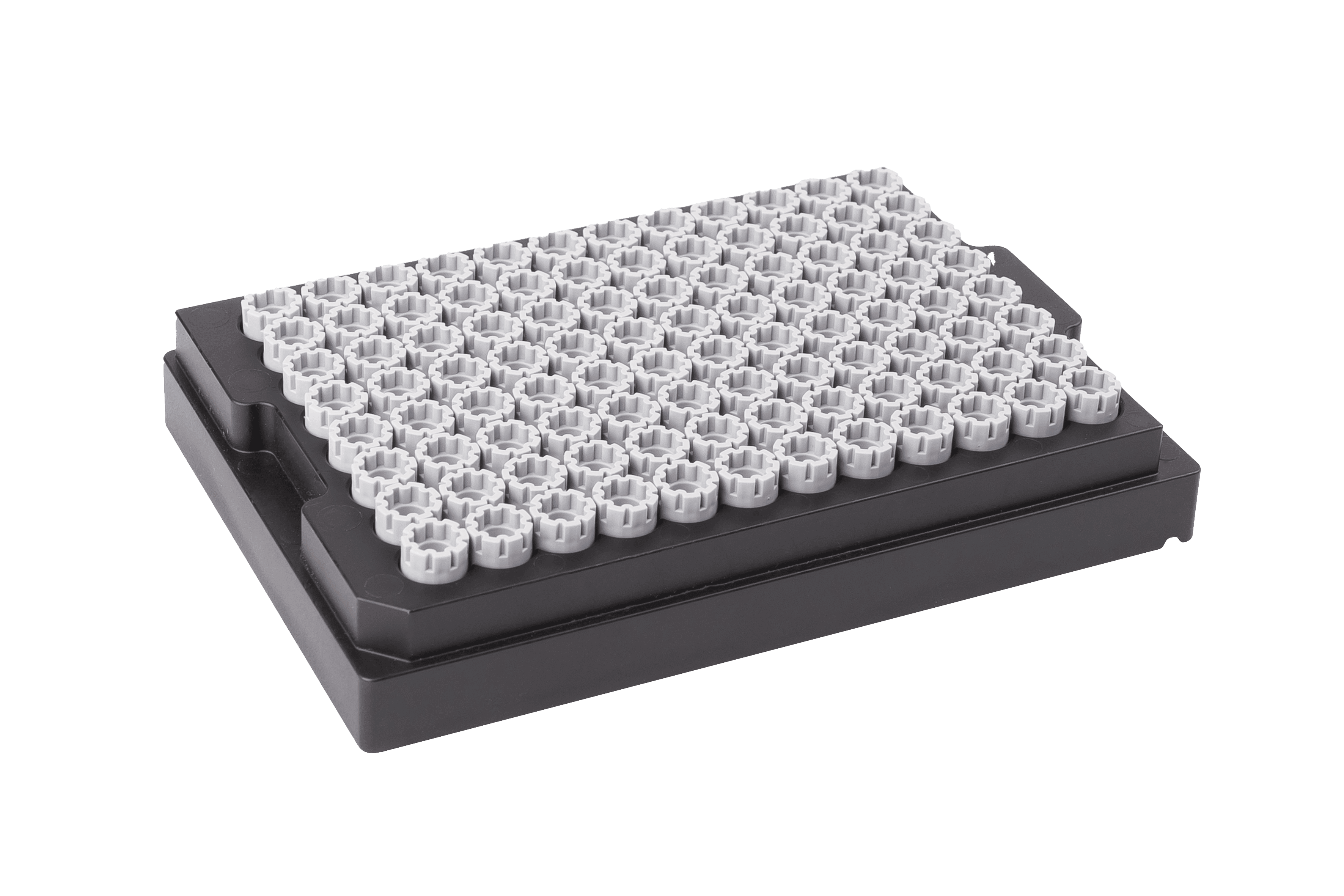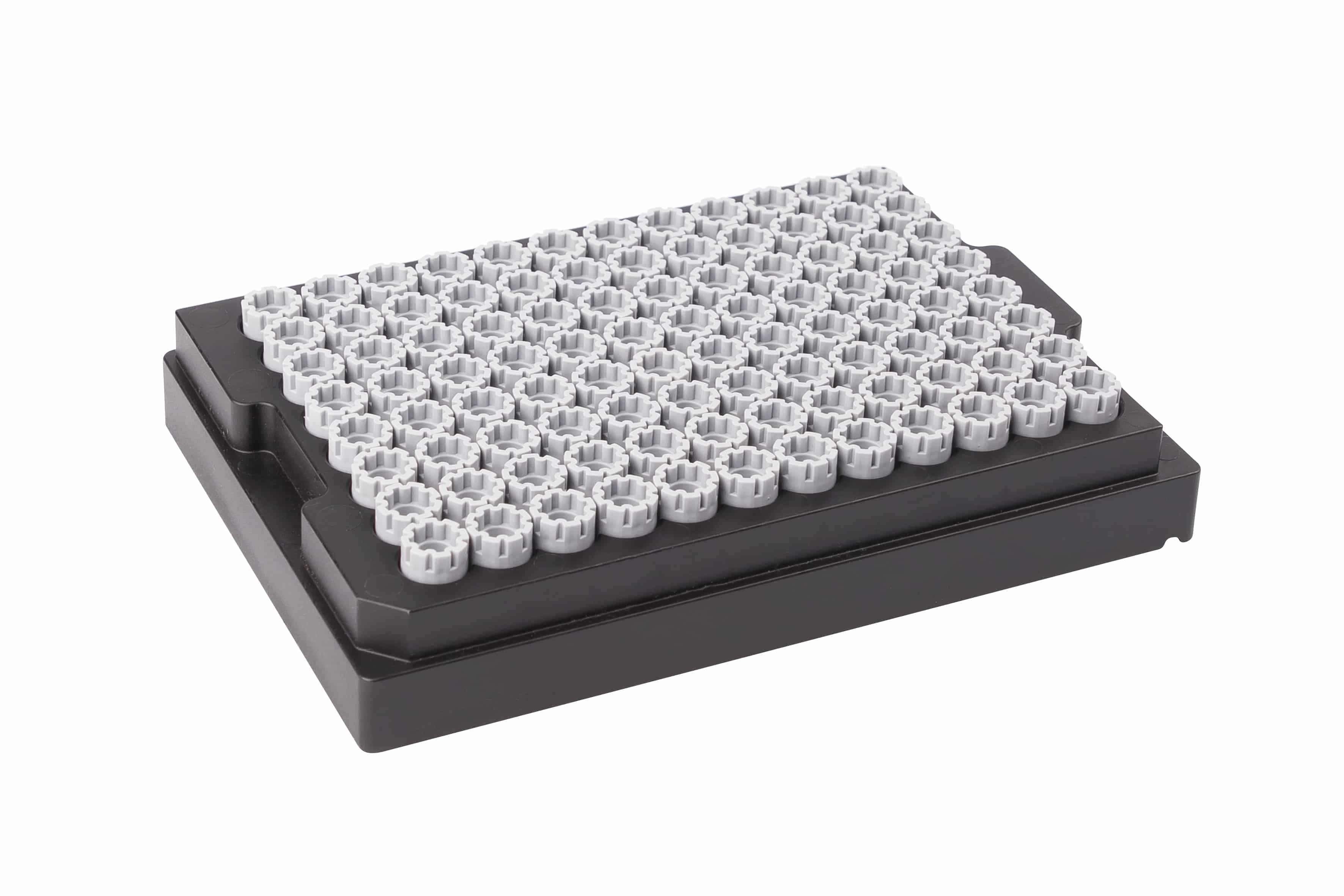 Micronic 提供适用于自动化设备的管盖架。该管盖架与 Micronic 的自动化螺旋盖开/关盖设备完全适配,其设计基于实验室自动化与筛查协会(ANSI/SLAS)标准,可适配 96 -、48 -或 24 -规格的螺旋盖。此外,还有适配Hamilton设备的管盖架,这种高底座管盖架兼容 96 孔规格的内螺纹螺旋盖,且便于堆叠,同样遵循 ANSI/SLAS 标准。
